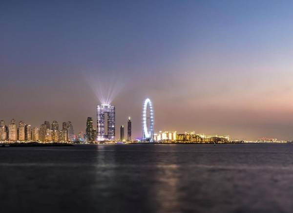 Address Beach Resort is a luxurious hotel located in Dubai, boasting a unique design with two 77-story towers connected by a sky bridge. The hotel offers a range of amenities, including a restaurant, free private parking, an outdoor swimming pool, and a fitness center. Guests can also enjoy a rooftop infinity pool with stunning views of popular landmarks such as Bluewaters Island, Dubai Eye, and Palm Jumeirah. The hotel features family rooms and a 24-hour front desk, as well as a spa, two open-air swimming pools, and a Kids Splash Pad. The nearest airport is Al Maktoum International Airport, located 13 miles away.