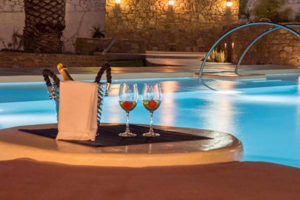 Akkadian Boutique Hotel is a 5-star hotel located in Mikonos, just a short walk from Megali Ammos Beach. It offers a restaurant, free private parking, and a seasonal outdoor pool. The rooms are air-conditioned and come with free WiFi, a desk, and a flat-screen TV. Some rooms have balconies with pool views. The hotel also has a 24-hour front desk, room service, and currency exchange. A continental or buffet breakfast is available, and there is a terrace for guests to relax on. Nearby attractions include Korfos Beach, Agios Charalabos Beach, and Mykonos Windmills. The nearest airport is Mykonos Airport, just 0.6 miles away.