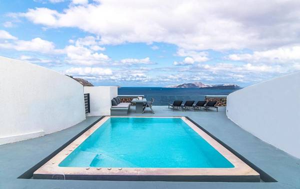 The 5-star Ambassador Santorini Luxury Villas & Suites offers stunning views of the volcano and Aegean Sea, with each elegant accommodation featuring a private pool. The hotel combines modern and traditional elements in its design, with all rooms, suites, and villas tastefully furnished and decorated. Guests can relax in their private pool with hydro-massage jets, or enjoy a breakfast from the menu served in their room or by the pool. The on-site restaurant offers Greek and Mediterranean cuisine, while the pool bar serves refreshing cocktails and snacks. Additional amenities include a main pool area with modern lounge chairs and outdoor showers, a spa offering various treatments, and free Wi-Fi throughout the property. The hotel is conveniently located near Athinios Port and Santorini Airport, and is just a short distance from the lively town of Fira. Free private parking is available on site.