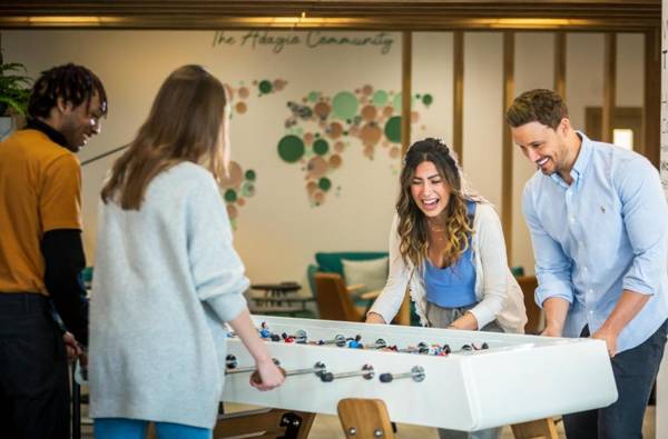 Aparthotel Adagio London Stratford is a hotel located 1.3 miles from Olympic Stadium in London. It offers air-conditioned rooms and a fitness center. The hotel has a 24-hour front desk, shared kitchen, and free WiFi. Private parking is available on site. Each room has a closet, flat-screen TV, and private bathroom. Some rooms also have a kitchen with a dishwasher, microwave, and fridge. Guests can enjoy a continental breakfast and the nearest airport is London City Airport, 5 miles away.