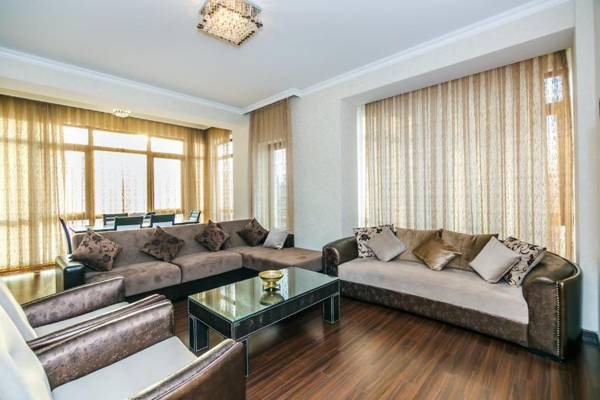 Apartment on Tarqovu street in Baku's Nasimi district offers luxurious 5-star accommodations with a restaurant, bar, shared lounge, and garden. It is conveniently located just a 14-minute walk from Fountain Square and offers free private parking, 24-hour front desk service, and free WiFi. The apartment has 3 bedrooms, 2 bathrooms, a fully equipped kitchen, and a patio with garden views. Guests can also enjoy amenities such as a hot tub and playground. Bicycle and car rental services are available on site. The popular Freedom Square is within a 20-minute walk, while the iconic Maiden Tower is 1.1 miles away.