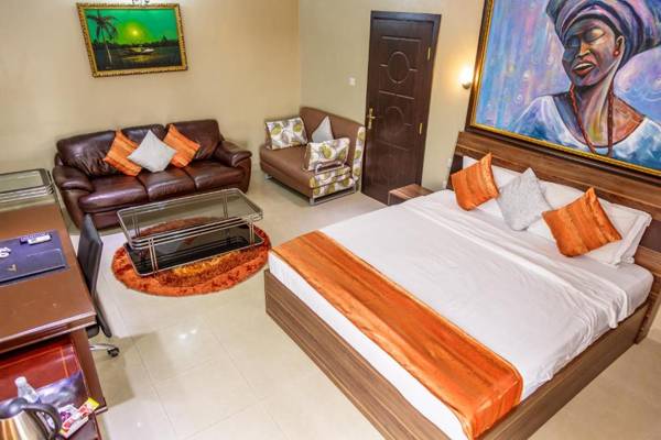Apartment Royale Hotel & Suite in Ikeja offers a year-round outdoor pool and hot tub, as well as an on-site bar. Some rooms have a private bathroom with a hot tub, while others have bath robes and free toiletries. Certain units also have a seating area and a kettle. The hotel has free WiFi and a flat-screen TV in all rooms. There is a 24-hour front desk and gift shop, and car hire is available. The nearest airport is Murtala Muhammed International Airport, just 3.1 mi away.