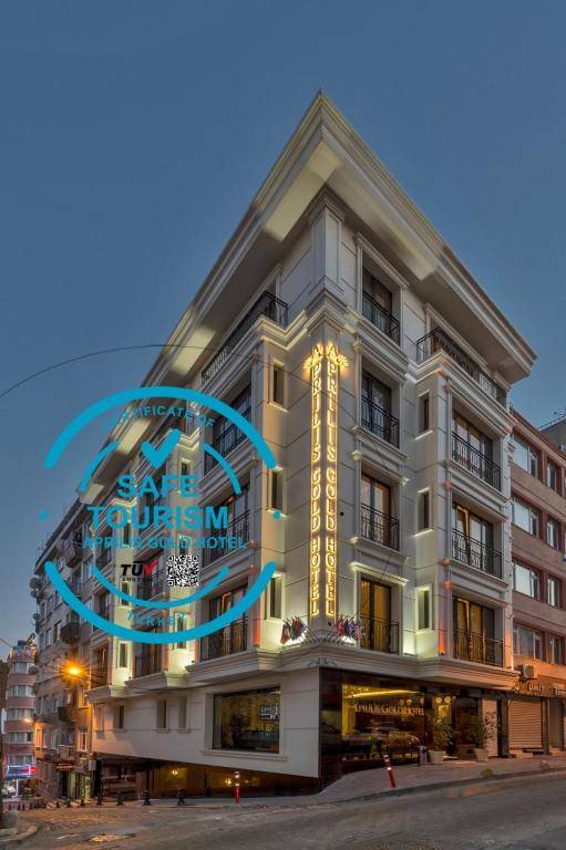 Aprilis Gold Hotel is a centrally located hotel in the Old City of Istanbul, within walking distance to popular cultural landmarks such as the Grand Bazaar and Hagia Sophia. The hotel offers 24/7 assistance from its staff and rooms decorated with authentic oil paintings and equipped with a 32-inch LED TV, kettle, and private bathroom. Guests can enjoy free WiFi, a sauna, and fitness center during their stay. The nearest airports are 30 mi and 29 mi away.