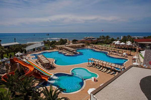 Arcanus Side Resort is a luxurious resort located on the seafront, offering a private beach with free sun loungers and parasols. The resort boasts 2 outdoor pools, water slides, an indoor pool, fitness center, tennis court, and spa facilities. The modernly decorated rooms feature a flat-screen TV, air conditioning, and a mini-bar, along with a balcony offering sea or garden views. Guests can choose from à la carte or buffet dining options, with the option to dine on the terrace with stunning sea views. The bars at the resort offer a variety of alcoholic and non-alcoholic drinks. The resort is 3.1 miles from Side town center and 47 miles from Antalya Airport.