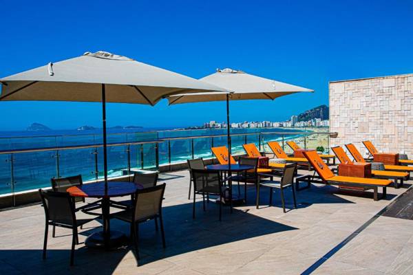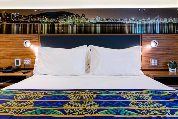 Arena Leme Hotel is a beachfront accommodation located in Rio de Janeiro, just a short walk from Copacabana beach. The hotel offers an outdoor pool, sauna, and an on-site restaurant where guests can enjoy complimentary breakfast. Each room is equipped with modern amenities such as a flat-screen TV, air conditioning, and a private bathroom with a hairdryer. The hotel also has a 24-hour front desk, fitness center, and bar. Popular attractions like Sugarloaf Mountain are within close proximity and the nearest airport is only 3.1 miles away.