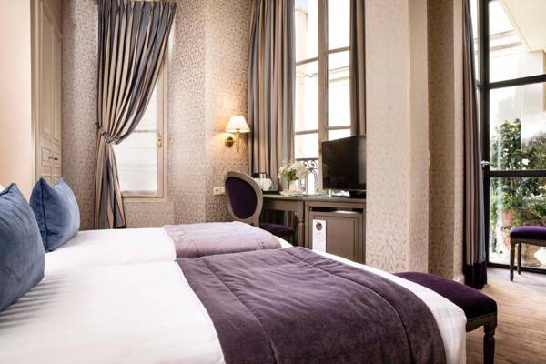 Arioso is a hotel that offers a lounge bar and elegant guestrooms with free WiFi. It is located near popular attractions such as Faubourg Saint-Honoré and Galeries Lafayette Department Store. The Champs-Élysées are also within walking distance. The guestrooms are air-conditioned and decorated with luxurious wallpaper and fabrics, some even offering a balcony or seating area. Breakfast is served daily and the hotel also has a lounge bar and patio for guests to relax in. Services such as excursion reservations and 24-hour staff availability are also offered. The hotel is conveniently located near a metro station and Parc Monceau.