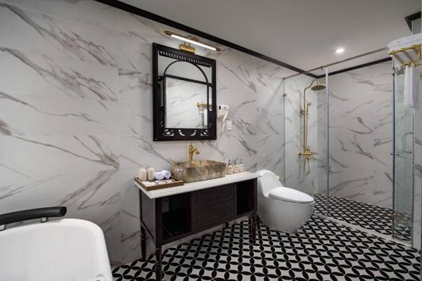 Aspira Cruises is a 5-star beachfront accommodation located in Ha Long, offering guests a restaurant, bar, and shared lounge. There is also an outdoor swimming pool, fitness center, and 24-hour front desk. The air-conditioned rooms feature amenities such as a desk, minibar, and flat-screen TV, along with a private bathroom and balcony. Guests can enjoy a continental breakfast and access to a hot tub and grill. Activities like hiking, cycling, and fishing are available, and the nearest airport is 41 miles away with a paid airport shuttle service.