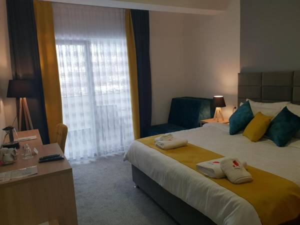 Atva Residence Hotel in Dolni Dobrenoec offers a variety of amenities including a restaurant, bar, shared lounge, and garden. The hotel also has a 24-hour front desk and offers free WiFi throughout the property. Family rooms are available, and each room comes with a private bathroom, flat-screen TV, and air conditioning. Some rooms even have a balcony. Guests can enjoy a continental or buffet breakfast each morning, and the hotel also has a terrace. The popular towns of Galičnik and Kruševo are both within a 20-mile distance from the hotel.