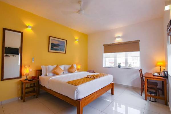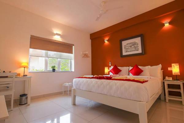 AURA HOTEL is a 5-star hotel located in Pondicherry, just a short walk from Promenade Beach and Sri Aurobindo Ashram. It offers a restaurant, free WiFi, and free private parking. The hotel has a 24-hour front desk and concierge service, as well as airport transportation and car rental options. The rooms are equipped with an electric tea pot, air conditioning, and a flat-screen TV, with some rooms offering city views. Guests can enjoy a continental or à la carte breakfast, and popular attractions like Bharathi Park and Manakula Vinayagar Temple are nearby. The Pondicherry Airport is only 3.1 miles away.
