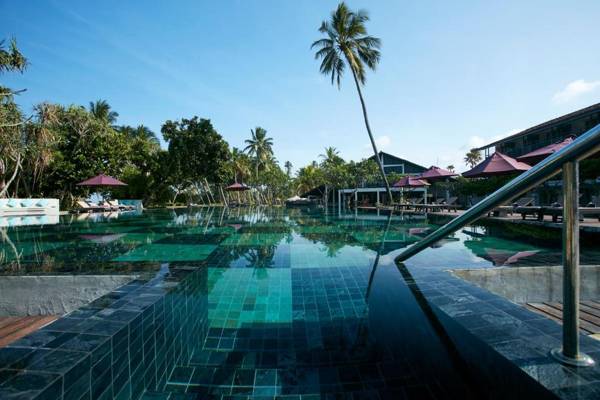 Avani Bentota Resort is a luxurious property located on Sri Lanka's western coastline, 62 miles from the airport and 41 miles from Colombo. Designed by famous architect Geoffrey Bawa, the resort has a contemporary feel and features two outdoor pools and ample parking. The guest rooms are modern and well-equipped, with private balconies or courtyards facing the ocean. Dining options include a multi-cuisine buffet at Breeze Restaurant and Asian cuisine at Frangipani Restaurant, as well as a lively bar with live entertainment. Guests can also enjoy water sports and indoor games, or relax at the Avani spa.