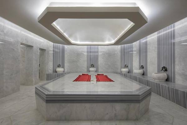 Aydinbey Queen's Palace & SPA is a 5-star hotel located 1.1 miles from The Land of Legends Theme Park in Belek. The hotel offers a restaurant, free private parking, a seasonal outdoor pool, and a fitness center. Guests can also enjoy free WiFi, a bar, and a private beach area. The rooms are equipped with air conditioning, a safety deposit box, and a flat-screen TV, with some units featuring a balcony. The hotel also has an indoor pool, entertainment staff, and a 24-hour front desk. A buffet breakfast is available for guests, and there is a terrace and ping pong table on site. The Garden of Tolerance is 1.8 miles away, and the nearest airport is Antalya Airport, 16 miles from the hotel.