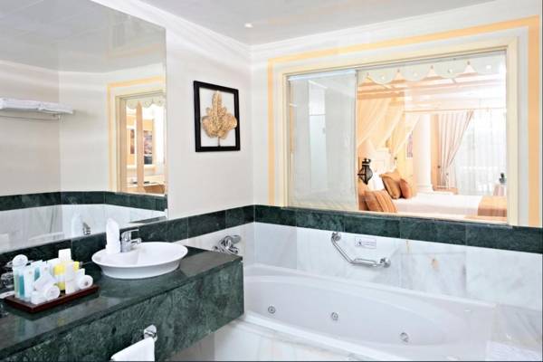 The Bahia Principe Luxury Bouganville is an adults-only all-inclusive resort located near the ocean in La Romana. It offers a large outdoor pool and hot tub, as well as a restaurant and bar with ocean views. Each suite is equipped with a flat-screen TV, coffee machine, and balcony with sea views. The private bathrooms include free toiletries and a spa bath. Guests can also enjoy the on-site nightclub and casino, and the front desk is available 24 hours a day. Banquet facilities are available on an outdoor terrace, and the resort is conveniently located near the city center and airport. Minitas Beach is also within driving distance.