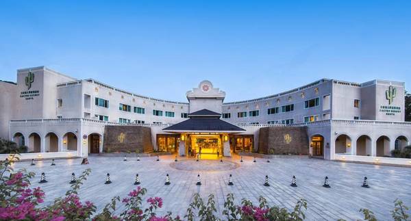 Cactus Resort Sanya by Gloria is a tropical paradise with a 10-minute walk to Yalong Bay beach. It offers a large outdoor pool, 4 dining options, and a day spa. The classic air-conditioned rooms have modern amenities such as a flat-screen TV and mini-bar. Guests can enjoy activities like mini golf, table tennis, and mah-jongg, as well as a well-equipped gym, sauna, and tennis courts. Atrium Café offers a buffet breakfast with Western and Asian options, while Resort Diner serves Chinese specialties with stunning pool views. The resort is a 10-minute drive from Yalong Bay Tropic Paradise Forest Park and a 40-minute drive from Sanya city center.
