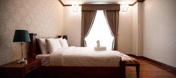 Capitol Residence is a 4-star hotel in Vientiane with a restaurant, fitness center, and bar. It also offers free private parking, luggage storage, and airport transportation. The rooms are air-conditioned with amenities such as a desk, electric tea pot, and flat-screen TV. Some rooms even have a kitchen with a fridge. Guests can enjoy an American breakfast and visit nearby attractions like Wat Sisaket and Laos National Museum. The hotel is conveniently located just 3.2 miles from Wattay International Airport.