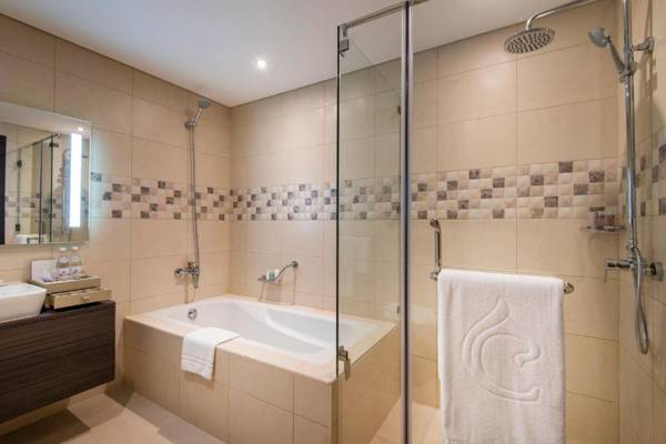 Centara West Bay Hotel & Residences Doha is a hotel located 2.7 miles from Qatar International Exhibition Center. It offers a variety of amenities including a restaurant, free parking, a fitness center, and a bar. The property also has family rooms, a playground, and a 24-hour front desk. Some rooms have a kitchen and the hotel serves continental or à la carte breakfast. Guests can also enjoy a sauna, indoor pool, hairdresser's, and business center on-site. Popular attractions such as Qatar Sports Club Stadium and Diwan Emiri Royal Palace are within a few miles of the hotel.