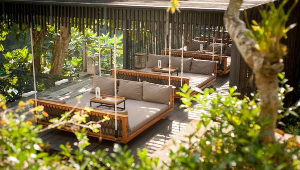 Chapung Sebali is a luxury resort located in a traditional village in Ubud, offering villas with private pools and access to the famous Jungle Fish pool bar and infinity pool. The resort also offers activities such as yoga, rice field trekking, horse-riding, and cycling. Free WiFi is available throughout the property. The resort is a 10-minute car ride from central Ubud and a 90-minute drive from Ngurah Rai International Airport. The villas are spacious and bright, equipped with air conditioning and a flat-screen TV. Guests can enjoy drinks from the mini-bar while lounging by the pool or exploring the surrounding greenery. Services such as bicycle rental, shuttle service, and day trips can be arranged at the tour desk, and a massage service and babysitting services are also available.