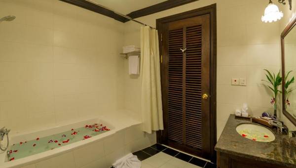 Chateau d'Angkor La Residence is a centrally located accommodation option in Siem Reap's Old French Quarter. The hotel boasts an outdoor saltwater pool and an on-site restaurant, and offers free WiFi and private parking. It is within walking distance of popular attractions such as the Old Market and Pub Street, and a short drive from Angkor Wat Temple. The air-conditioned suites feature a balcony with city views, as well as a separate seating area, dining area, and fully equipped kitchen. The hotel also offers a 24-hour front desk, tour arrangements, and massage treatments. Guests can enjoy a variety of Cambodian and Western dishes at the on-site restaurant or order room service.
