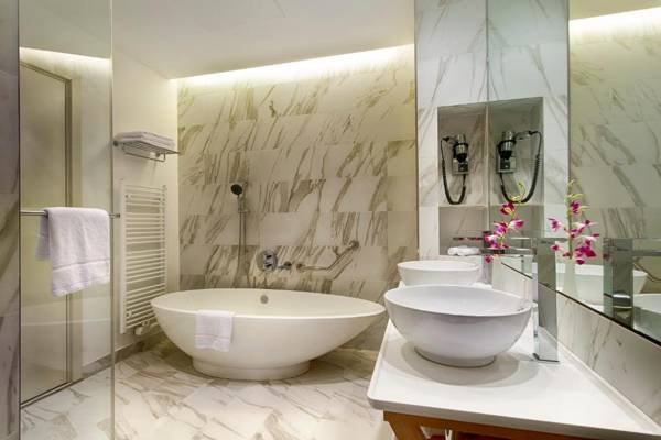 The Crowne Plaza Berlin - Potsdamer Platz is a 4-star-Superior hotel located in the city center of Berlin. It offers a gym, wellness area, and bicycle rental services. The hotel is within walking distance of popular attractions such as Potsdamer Platz and is also close to public transportation. The rooms are modern and equipped with amenities like a flat-screen TV and mini-bar. Guests can enjoy breakfast at the hotel's restaurant and Mediterranean cuisine at the Layla by Meir Adoni restaurant. Free public parking is available, but subject to availability. The hotel is also conveniently located near Anhalter Bahnhof Train Station and Möckernbrücke underground stations, providing easy access to other parts of the city.