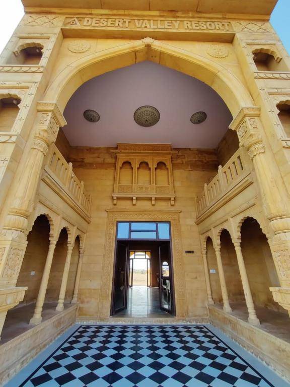 Desert Valley Resort in Jaisalmer offers a restaurant garden and views of the garden. It is located 24 miles from Jaisalmer Fort and is close to popular attractions such as Kuldhara Village and Bara Baag. The resort has a 24-hour front desk and provides evening entertainment. Each room has air conditioning, a closet, a flat-screen TV, and a private bathroom with bed linen, towels, and a balcony with a pool view. Some rooms also have a safety deposit box, terrace, and mountain views. Guests can enjoy a buffet breakfast and the resort offers an ironing service and business facilities. The nearest airport is Jaisalmer, 21 miles away, and the resort provides a paid airport shuttle service.