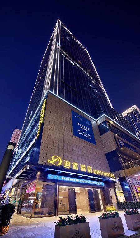 Difu Hotel in Shenzhen offers a restaurant, fitness center, and garden views. It is conveniently located near popular attractions such as Shenzhen Stadium, Shenzhen Civic Centre, and Shenzhen Convention & Exhibition Centre. The hotel has a 24-hour front desk, room service, and currency exchange. Each room is equipped with a desk, air conditioning, and a flat-screen TV, with some rooms also having a safety deposit box. Guests can enjoy a buffet breakfast and activities like cycling. Nearby attractions include Happy Valley Theme Park and Shekou Sea World. The nearest airport is Shenzhen Bao'an International Airport, 22 miles away.
