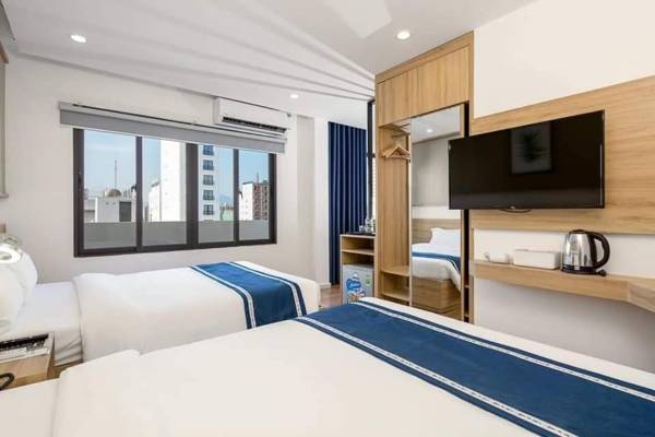 Doji Stars is a hotel located in the My Khe Beach district of Danang, featuring air-conditioned rooms with cable flat-screen TVs. The hotel offers a restaurant, 24-hour front desk, and room service, as well as free WiFi throughout the property. Family rooms are also available. Guests can enjoy buffet and Asian breakfast options daily, and the hotel is just a short walk from My Khe Beach and Bac My An Beach. The nearest airport is Da Nang International Airport, located 3.1 miles away.