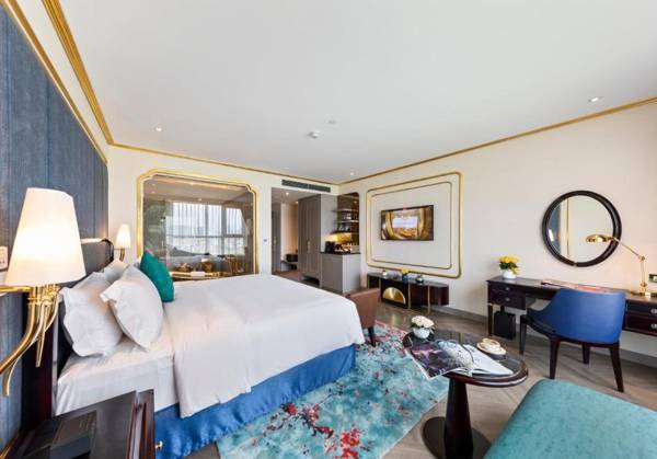 Dolce by Wyndham Hanoi Golden Lake is a 5-star hotel in Hanoi with a restaurant, outdoor pool, fitness center, and bar. The property also offers a shared lounge, business center, and free WiFi. Rooms are air-conditioned and include amenities such as a desk, minibar, and flat-screen TV, with some rooms featuring a patio and lake views. Guests can enjoy a à la carte breakfast and access to a hot tub and terrace. Popular attractions like Vincom Center Nguyen Chi Thanh, One Pillar Pagoda, and Hanoi Temple of Literature are nearby. The nearest airport is Noi Bai International Airport, 13 miles away.