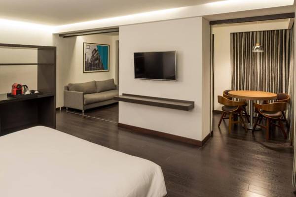 Doubletree By Hilton Guadalajara Centro Historico Mexico is a hotel in Guadalajara that offers a fitness center, shared lounge, and city views. The hotel also has a restaurant, 24-hour front desk, and room service, as well as free WiFi throughout the property. The rooms are equipped with a TV, air conditioning, and private bathroom with free toiletries. Some rooms also have a seating area and a fridge. Guests can enjoy a buffet breakfast and use the hotel's terrace and business center. The hotel is located near popular attractions such as Guadalajara Cathedral, Cabanas Cultural Institute, and Guadalajara Wax Museum. The nearest airport is Guadalajara Airport, which is 11 miles away.
