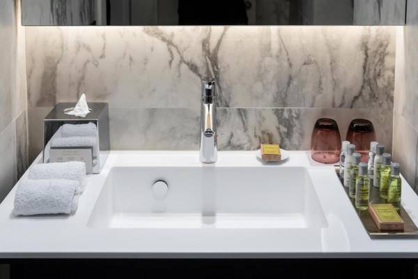 DoubleTree by Hilton Madrid-Prado is a hotel located in the Madrid City Center district of Madrid. It is within walking distance of popular attractions such as the Thyssen-Bornemisza Museum, Prado Museum, and Mercado San Miguel. The hotel offers a restaurant, 24-hour front desk, and room service, as well as free WiFi and concierge and luggage storage services. The rooms are equipped with a closet, private bathroom, flat-screen TV, and air conditioning, with some rooms featuring a patio. Guests can enjoy a continental or buffet breakfast and have access to a business center, gym, and bar. The Reina Sofia Museum and Retiro Park are also nearby. The nearest airport is Adolfo Suarez Madrid-Barajas Airport, located 10 miles from the hotel.