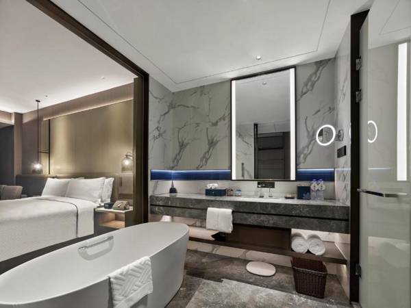 DoubleTree by Hilton Qidong is a hotel in Qidong that offers a variety of amenities including a restaurant, free bikes, a bar, and shared lounge. Guests can also take advantage of services like a 24-hour front desk, room service, and currency exchange. The hotel features air-conditioned rooms with amenities such as a desk, electric tea pot, minibar, safety deposit box, TV, and private bathroom with a shower. Guests can enjoy a buffet or Asian breakfast every morning. The hotel is located 19 miles from Chongming and the nearest airport is Nantong Xingdong Airport, 43 miles away.