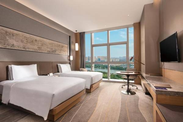 Doubletree By Hilton Suzhou Wujiang is a hotel in Suzhou that offers amenities such as a restaurant, free bikes, a fitness center, and a bar. It is located near popular attractions like Jinji Lake, Hanshan Temple, and The Lingering Garden. The hotel has a 24-hour front desk, room service, and currency exchange for guests. Rooms are equipped with air conditioning, a flat-screen TV, and some have a safety deposit box. Guests can enjoy a continental or buffet breakfast each morning. The hotel is also close to Tiger Hill and Tianyi Hot Springs. The nearest airport is Sunan Shuofang International Airport, located 36 miles away.