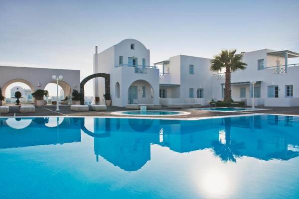 El Greco Palace Villas is a 5-star accommodation located within 1476 feet of Fira Town. It offers luxurious amenities such as 4 swimming pools, a wellness center, and a restaurant with an open-air terrace. The suites are inspired by local style and feature private pools, kitchens, and living areas. The on-site restaurant, La Pergola, serves American breakfast and international dishes, while the Greco Cafe and Aiolos Pool Bar offer traditional Greek coffee and cocktails. In addition to the pools, guests can also enjoy hot tubs and an indoor pool. The hotel is located near popular beaches and offers free Wi-Fi and parking.
