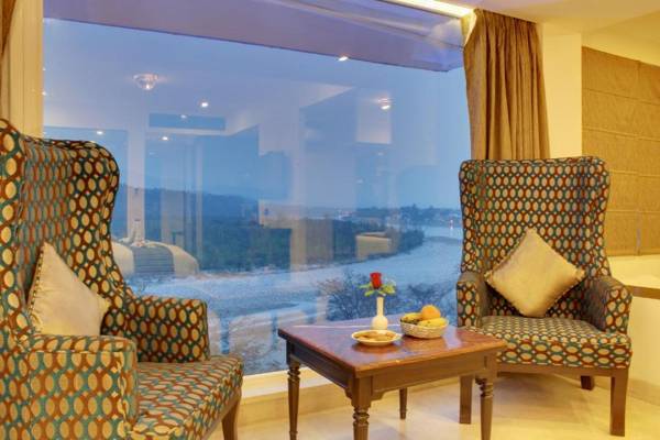 EllBee Ganga View is a hotel in Rishikesh that offers stunning views of the Rajaji National Park and is just a short walk from the Ganges River. It has a 24-hour front desk, free Wi-Fi in public areas, and is close to popular attractions such as Triveni Ghat and Bharat Mandir Temple. The nearest bus stand is 0.9 mi away and the famous Lakshman Jhula Bridge is 2.8 mi away. The hotel also offers convenient access to Jolly Grand Airport and Haridwar Railway Station. The spacious rooms and suites have air conditioning, a flat-screen TV, and other amenities for a comfortable stay. The hotel also has a business center, meeting rooms, and a tour desk for guests' convenience. Guests can enjoy delicious meals at the on-site restaurants, Naivedhyam and The Sitting Elephant, which offers stunning views of the hills.