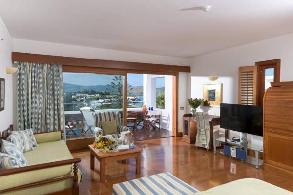 Elounda Beach Hotel & Villas is a luxurious seafront property on the northeast coast of Crete, offering 5 tennis courts, basketball and volleyball courts, and a spa center with various amenities. The hotel also boasts multiple restaurants and bars, as well as free WiFi throughout the property. The modern and elegant rooms, suites, and bungalows offer stunning views of the gardens or Mirabello Bay and are equipped with air conditioning, a safe, and flat-screen TV. Guests can enjoy a complimentary breakfast buffet and indulge in personalized treatments at the Chenot SPA. The hotel also features a sea water pool and activities for children. Excursions to nearby attractions can be arranged, including Knossos Palace, and the towns of Agios Nikolaos and Elounda are within a short distance. The nearest airport is Heraklion International Airport, 40 miles away.