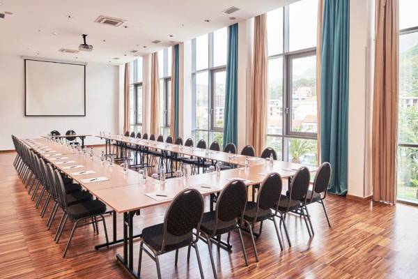 The Falkensteiner Hotel Montenegro is situated on a hill overlooking the beautiful Becici Beach and is just a short distance from Budva. The hotel offers a variety of amenities including a casino, gym, spa, and two swimming pools. Guests can also enjoy a private beach area with free access to parasols and sun loungers. Dining options include a lobby lounge, poolside restaurant, and a main show kitchen restaurant serving Mediterranean and international cuisine. The lobby bar offers a panoramic terrace with views of the Adriatic Sea and a variety of drinks and snacks. The outdoor swimming pool offers stunning sea views and all rooms are equipped with modern amenities.