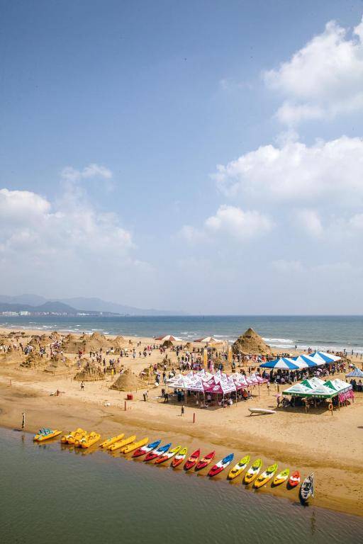 Fullon Hotel Fulong is a luxurious hotel located near Fullon Railway Station in Taipei, overlooking Fulong Beach. It offers free internet, an outdoor pool, and spa services. The spacious rooms are elegantly furnished and feature a flat-screen TV, large windows, and modern amenities. Guests can enjoy the different seasons of Taiwan at the hotel, including visiting Gueishan Island in spring, relaxing by the sea in summer, and soaking in hot springs in winter. The hotel's restaurant, Lotus Room, serves fresh seafood dishes, while the Scandinavian-style café offers al fresco dining and delicious afternoon tea.