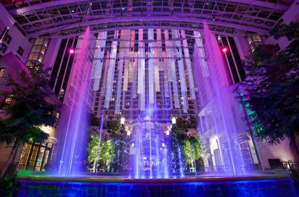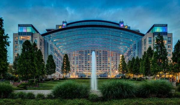 The Gaylord National Resort & Convention Center is a top destination in the Washington DC area, located 8 miles from the airport and 11 miles from the city. The resort features a beautiful garden Atrium, multiple dining options, a spa, pool, and fitness center. After a recent renovation, the guestrooms now offer luxury and amenities such as Smart TVs, coffee makers, and desks. Guests can upgrade to a balcony or river-view suite. The hotel also has meeting and event spaces, and guests can easily access the shops and restaurants of National Harbor. Additionally, the resort fee includes transportation to nearby attractions.