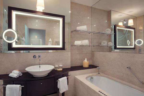 The Grand Hotel River Park is a luxurious accommodation situated in downtown Bratislava on the banks of the Danube River, a short drive from Vienna International Airport. The hotel offers spacious and elegant rooms with views of the river or castle hill, equipped with amenities such as a safety deposit box, mini-bar, and flat-screen TV. Guests can enjoy the Zion Spa Luxury on the 11th floor, featuring an indoor pool, hot tubs, saunas, and a fitness area. The hotel's restaurant and lobby bar offer stunning views of the Danube and serve delicious meals and beverages. The hotel also has its own heliport and private river pier, adding to its unique charm.