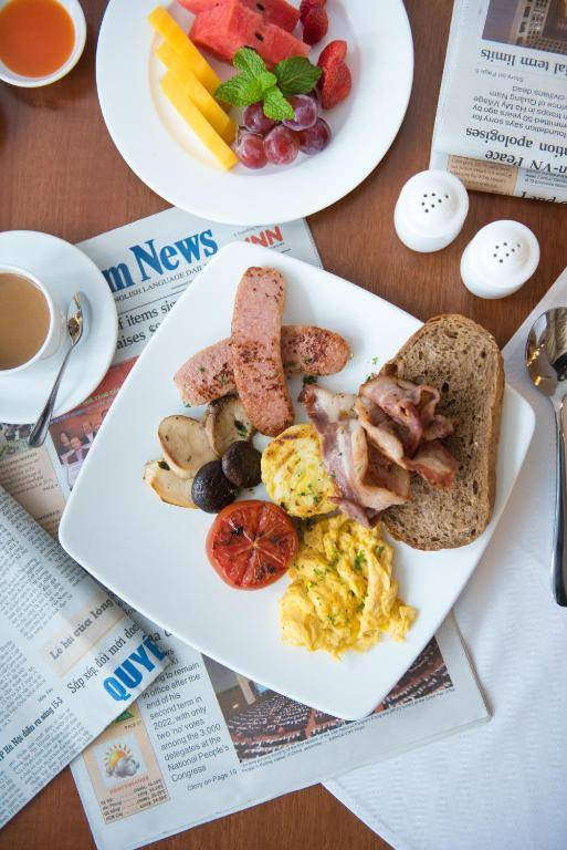 Hai Bay Hotel & Restaurant is a 4-star hotel located in the heart of Hanoi, just a short walk from popular attractions like Hoan Kiem Lake and St. Joseph Cathedral. The hotel offers a 24-hour front desk and elegantly furnished rooms with wooden flooring, air conditioning, and a flat-screen TV. Some rooms even have a separate seating area. The on-site restaurant serves a variety of local and international dishes, with special dietary options available upon request. Guests can also enjoy spa treatments and drinks at the snack bar. Shuttle service is available for a fee, and the hotel is conveniently located near the airport and other attractions.
