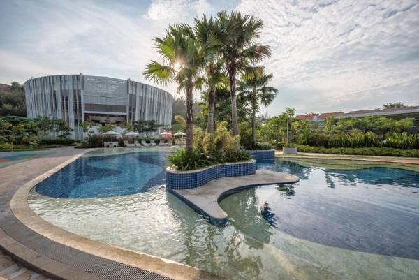 HARRIS Resort Barelang Batam offers a 4-star experience with a private beach, outdoor pools, and a fitness center. Guests can enjoy drinks at the bar and meals at the restaurant, with free WiFi and shuttle service. The rooms have flat-screen TVs, private bathrooms, and some have terraces with pool or sea views. A buffet or Asian breakfast is available every morning, and there is a spa and children's playground on-site. The reception is available 24/7 and staff speak English and Indonesian. The resort is located near Singapore and Tanjung Pinang, with the nearest airport being Hang Nadim International Airport.