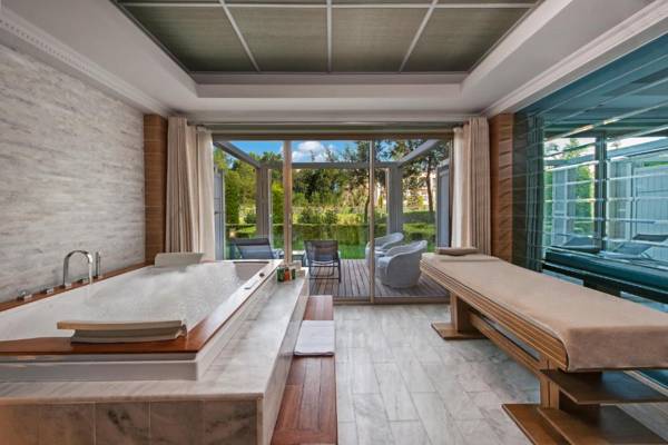 The Hilton Dalaman Sarigerme Resort & Spa is a five-star beach resort located in Sarigerme, Turkey. It is the first Hilton Resort in Turkey and the second in Europe. The resort offers stunning views of the surrounding landscape, including a mountain range, colorful flora, and crystal clear Aegean waters. It features 10 outdoor pools, 7 restaurants, and a large spa center. The rooms are modern and elegant, with some offering sea or mountain views. The resort also offers a variety of dining options and bars, as well as a range of facilities such as a Turkish bath and beauty treatments. It is conveniently located 20 minutes away from Dalaman International Airport and offers an ultra all-inclusive concept with 23 dining options and 493 luxury rooms and suites. Families, couples, and visitors of all ages can enjoy the 10 pools and 2 aqua parks at the resort.