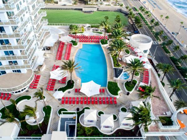 The Hilton Fort Lauderdale Beach Resort is a luxurious property with ocean views and fine dining options. Each modern suite has a spa bath, flat-screen TV, and kitchen or kitchenette. Guests can enjoy massages by the pool at Spa Q or take advantage of the fitness center and bike rentals. The resort also has a business center and electric car charging station. Continental breakfast is available for grab and go, while the onsite restaurants offer coastal cuisine and casual French and American specialties. The resort is a short drive from popular attractions and shopping areas.
