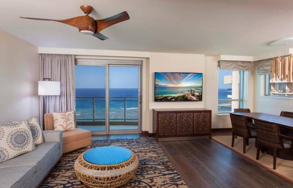 The Hilton Grand Vacation Club The Grand Islander Waikiki Honolulu is located within the Hilton Hawaiian Village Waikiki Beach Resort and offers access to all resort amenities. It is situated on 22 acres of beachfront and features six pools and Waikiki's longest water slide. The 37-story tower houses all suites, each with a balcony, fully-equipped kitchen, dining and seating area, and a TV with cable and DVD player. Guests can enjoy a variety of shops and restaurants, as well as activities like the Waikiki Starlight Luau, Friday night fireworks show, and Camp Penguin Kids Club. A fitness center, spa, and concierge services are also available. The hotel is conveniently located near popular attractions such as Ala Moana Beach park, Diamond Head Crater, and the Honolulu Zoo.