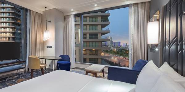 Hilton Istanbul Bakırköy offers a convenient location near the city center and stunning views of the Marmara Sea. The hotel provides free WiFi and a variety of luxurious accommodations, as well as high-end amenities, fine dining options, and modern meeting rooms. Guests can enjoy air-conditioned rooms with beautiful city and sea views, as well as a desk and complimentary coffee and tea. The hotel is easily accessible by public transportation, including the Marmaray train, which allows guests to visit popular attractions such as the Grand Bazaar and Hagia Sophia. It is also conveniently located near the CNR Expo and World Trade Center, and is within driving distance of both Istanbul airports.