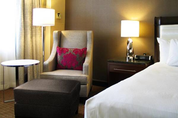 The Hilton Minneapolis is a city center hotel connected to the Minneapolis Convention Center via a skyway. It offers easy access to top attractions and comfortable accommodations with modern amenities. Each spacious room includes a 50-inch flat-screen TV, iPod docking station, fridge, and coffee machine. The hotel has an on-site restaurant and lounge, a fitness center, indoor pool, and 24-hour business center. Complimentary WiFi is available in the lobby. The hotel is close to popular sites such as US Bank Stadium and Nicollet Mall, and easily accessible to the Mall of America.