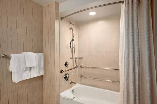The Hilton Rosemont/Chicago O'Hare hotel is located less than 3 miles from O'Hare International Airport and offers a free 24-hour airport shuttle service. The hotel also features an indoor pool with views of the Chicago skyline, an on-site restaurant, and modern amenities such as a 37-inch flat-screen TV and designer bath amenities. Meeting spaces and a grand ballroom are available for events, and there is a 24-hour fitness center and on-site restaurant and lounge. The hotel is conveniently located across the street from the Donald E. Stephens Convention Center and a 25-minute drive from downtown Chicago.