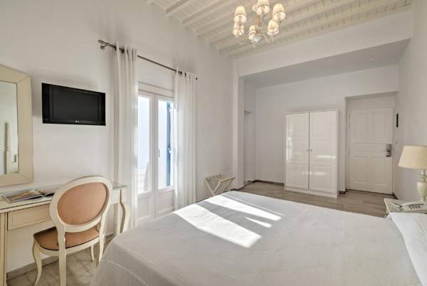 Alkyon Hotel, located a short distance from Mykonos Town, boasts a swimming pool and spacious rooms with balconies. Guests can enjoy free Wi-Fi and stunning views of the Mykonos bay from their private terrace. The pool area features free sun loungers and a pool bar serving cocktails and snacks. A rich breakfast with homemade products is served daily and 24-hour room service is available. The hotel also offers free shuttle service to and from the port and airport, and a bus stop with frequent service is conveniently located just opposite the hotel. Guests can also receive travel information and arrange car and bicycle rental from the 24-hour reception. Free private parking is available on site.