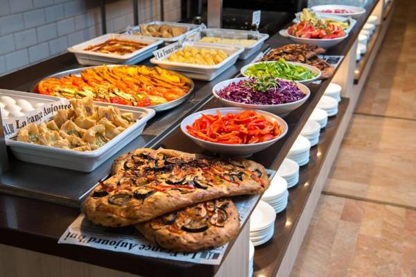 Hotel Astral Nirvana Club is a modern hotel located in the town center of Eilat, surrounded by shops and nightlife, and just a short walk from North Beach. The hotel features a large outdoor pool with water slides and stylish rooms with city views, equipped with amenities such as air conditioning, a kettle, fridge, and flat-screen TV. Guests can enjoy breakfast and dinner included in their stay, served in the breakfast room overlooking the pool. The hotel also has a bar where guests can order drinks and relax on the sun terrace by the pool. Additionally, the hotel is conveniently located within walking distance of Eilat Airport and the Central Bus Station.