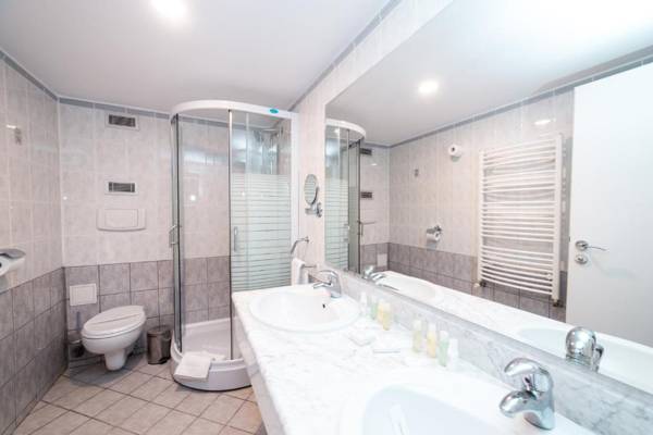 The 4-star Bavaria Blu is situated near the entrance of Mamaia Resort, just 66 feet from the beach. It boasts a seasonal outdoor pool and free WiFi. The rooms are elegantly decorated with plush carpets and air conditioning, and come equipped with mini-bars, cable TV, and private bathrooms. Some rooms offer sea views and romantic accents. Breakfast is served daily at the hotel's restaurant and there is a bar for drinks. The pool has a designated area for children and private parking is available for a fee. The hotel is also located near an aqua park and is a short distance from Constanta Train Station and airports. Transfers can be arranged at the 24-hour reception.