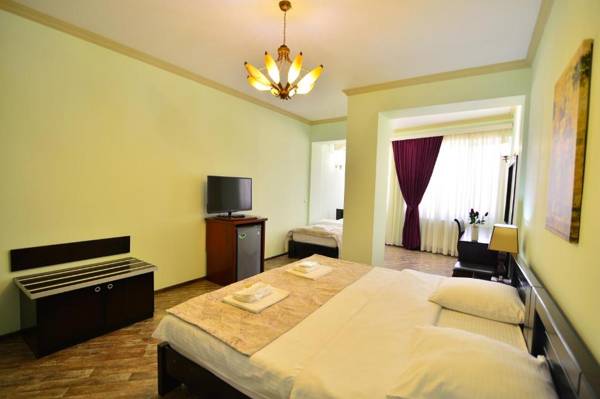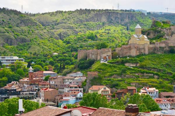 Hotel Blissdom in Tbilisi is a 4-star hotel with a terrace and city views, located a 13-minute walk from Freedom Square. It offers amenities such as a shared lounge, ATM, 24-hour front desk, airport transportation, room service, and free WiFi. The rooms are equipped with air conditioning, a seating area, flat-screen TV, safety deposit box, and private bathroom with bidet, slippers, and hairdryer. Some rooms even have a kitchen with a microwave, fridge, and minibar. Guests can enjoy an American or halal breakfast and nearby attractions include Rustaveli Theater, Tbilisi Opera and Ballet Theater, and Metekhi Church. The nearest airport is Tbilisi International Airport, located 8 miles away.