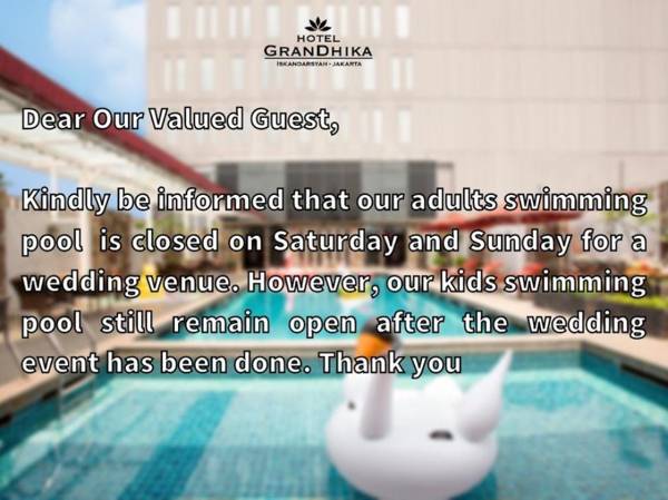 Hotel GranDhika Iskandarsyah in Jakarta offers a variety of amenities to ensure a pleasant stay. These include a 24-hour front desk, facilities for disabled guests, luggage storage, valet parking, and a car park. The rooms are designed for comfort and come with amenities such as LCD TVs, free wireless internet, and air conditioning. Guests can also enjoy the hotel's fitness center, sauna, outdoor pool, spa, and massage services. The staff at Hotel GranDhika Iskandarsyah are dedicated to providing reliable service to meet the needs of their guests.